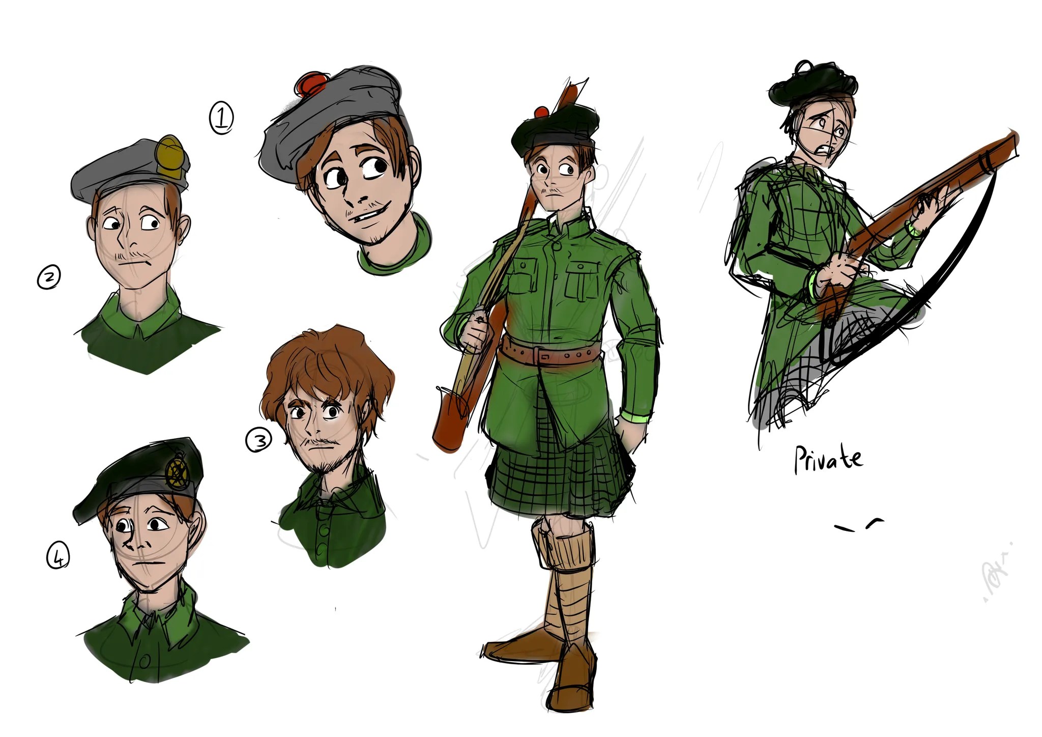 Outside the77, I have an 8 page horror tale set in Kirkcaldy during the great war. The project hasn’t been announced yet but it’s to promote scottish creators. Heres an exclusive of the character sketches.